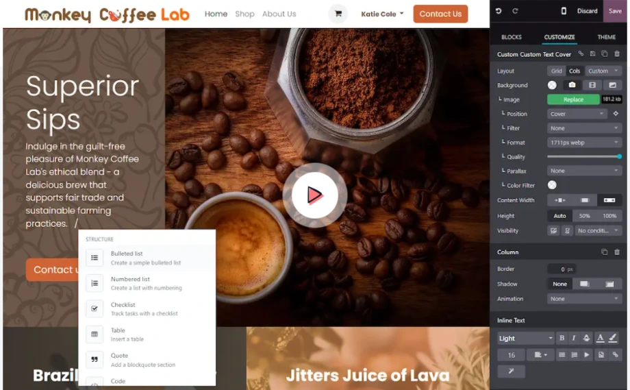 Crea tu sitio web utilizando bloques de construcción empresariales con un sistema de arrastrar y soltar.