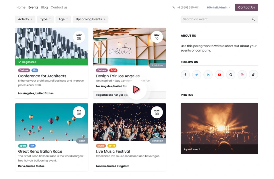 Organiza, promociona y gestiona tus eventos de principio a fin con Odoo Eventos.